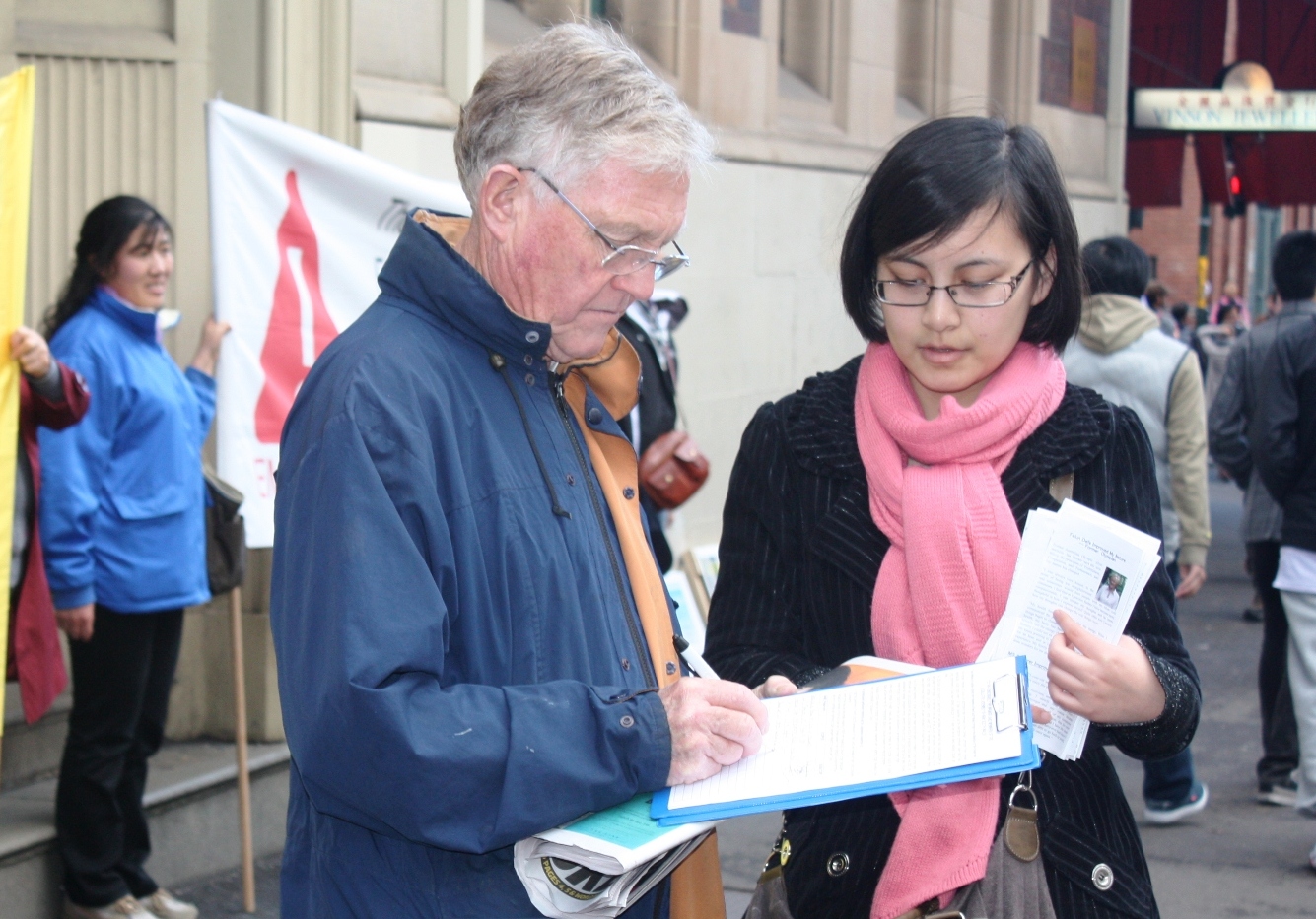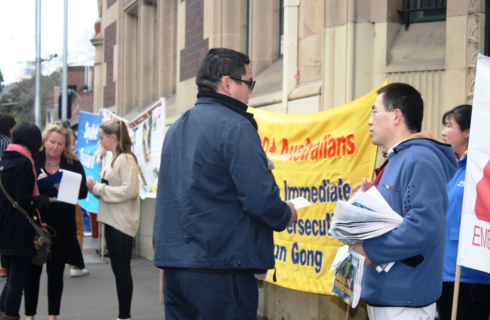 住在市中心Ultimo的澳洲人布拉德(Brad Berkel)经常看到法轮功在市中心举办一系列讲真相的活动,所以他已经明白了真相,也非常理解法轮功讲真相的目的。他告诉请他在征签信上签名的法轮功学员说:“你们办的讲真相活动很有意义。我非常支持你们。你们需要让更多的人知道,要继续坚持举办这些活动,因为还有很多人不知道。”