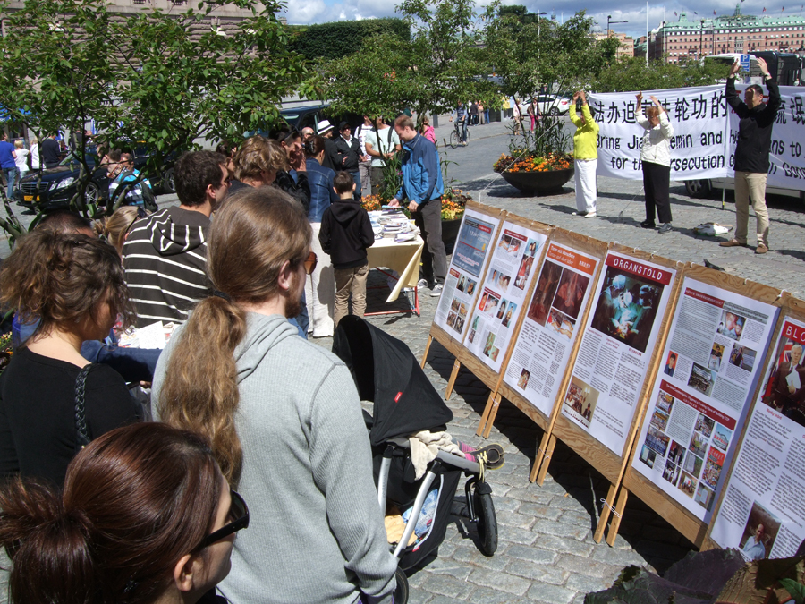 ![]() 瑞典法轮功学员在钱币广场(Mynttorget)举行讲真相活动,揭露迫害。 |