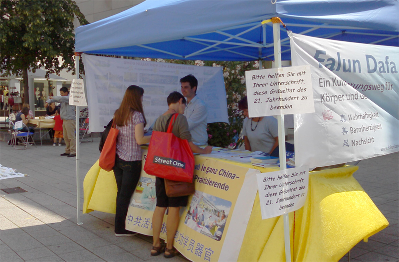 一位三十多岁的年轻男士路过信息台时和一位法轮功学员聊了起来。当他知道目前在中国正发生着对众多信仰“真善忍”的法轮功学员的迫害时,说:“我们的政府在和中国谈生意,但是人权要比生意更重要。你们把真相告诉我们真好,我支持你们!”