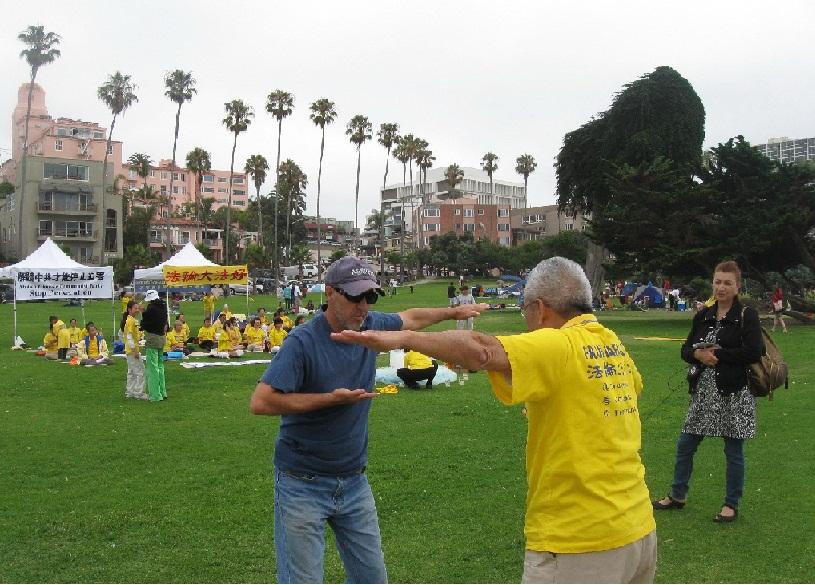 ![]() 拉荷亚海滨公园里,游客当场学炼法轮功 |