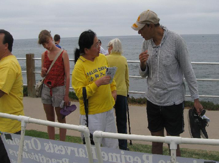 ![]() 拉荷亚海滨公园里,法轮功学员向过往行人揭露中共迫害 |