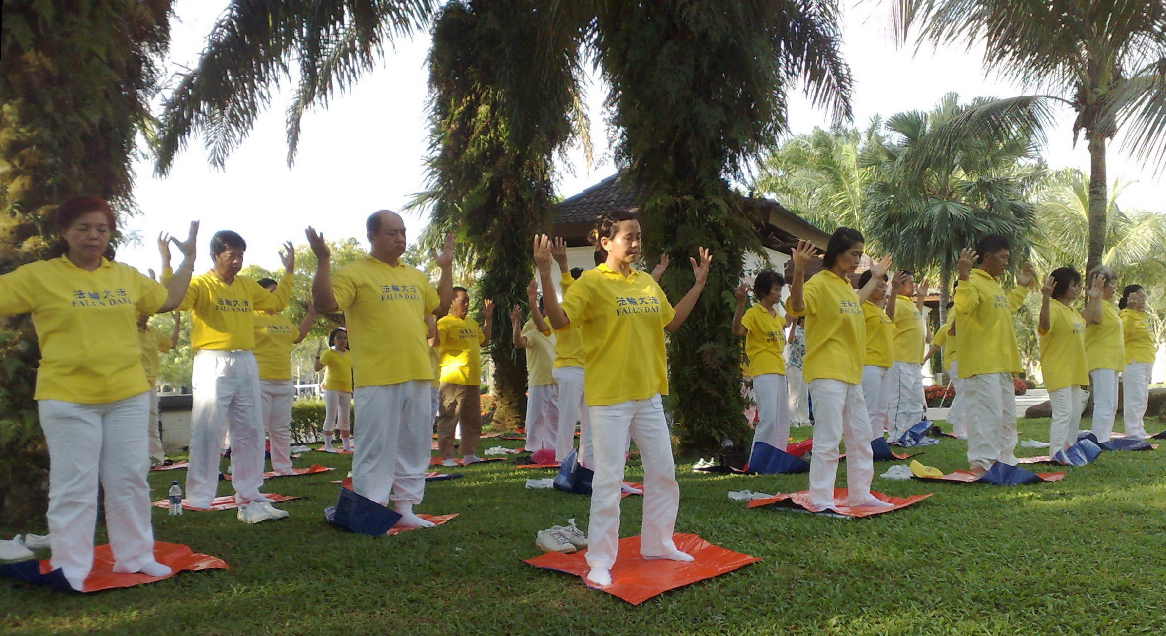 ![]() 法轮功学员在士迪雅英达公园集体炼功 |