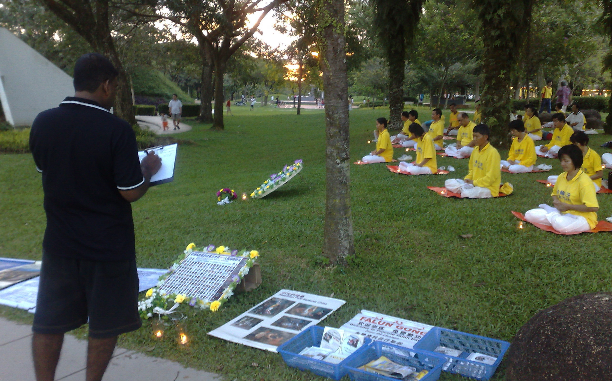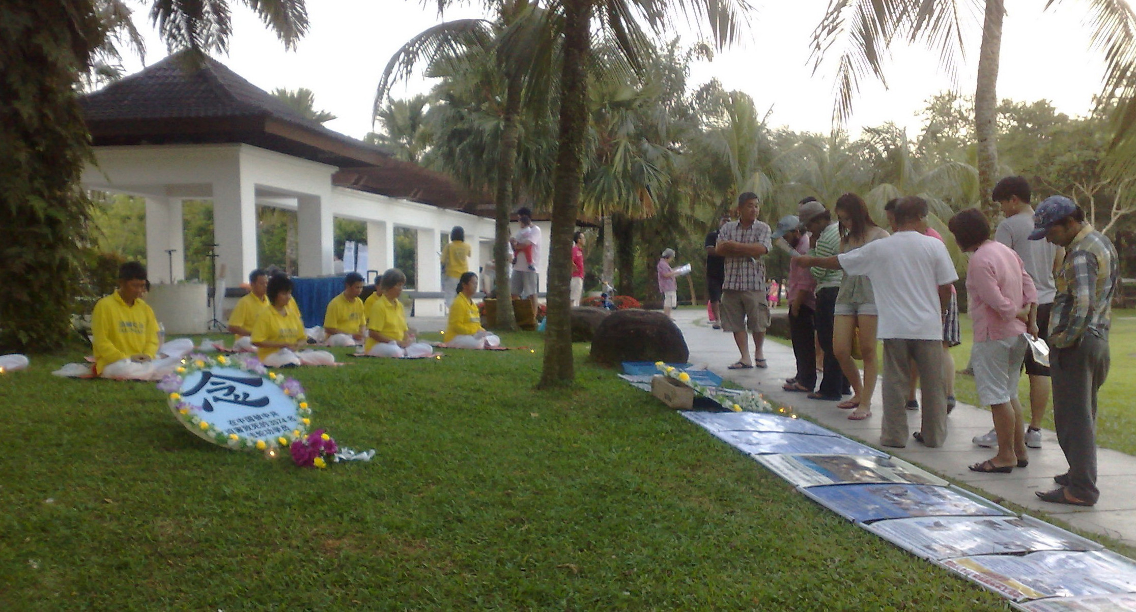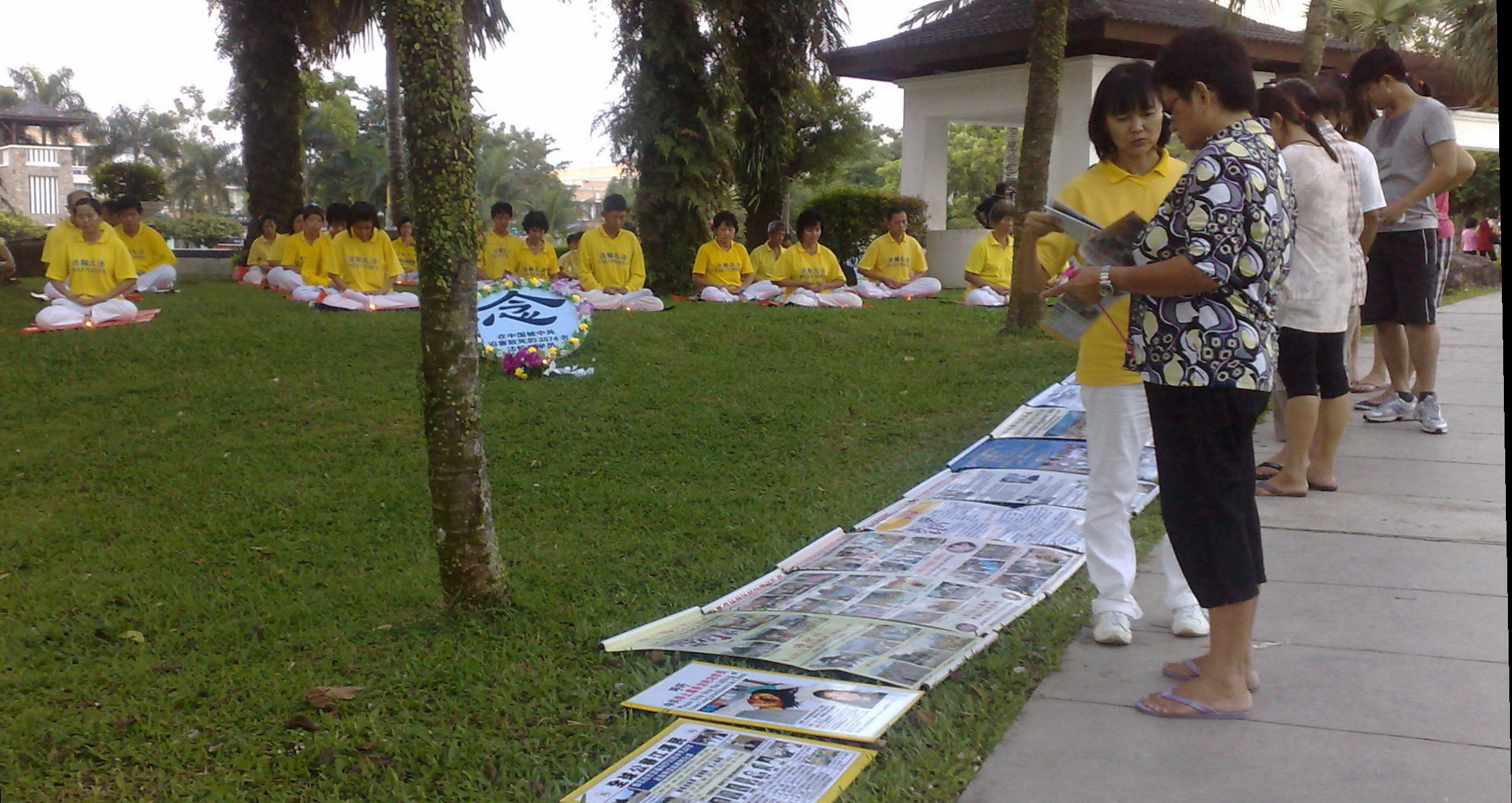 ![]() 马来西亚民众听法轮功学员讲真相。 |