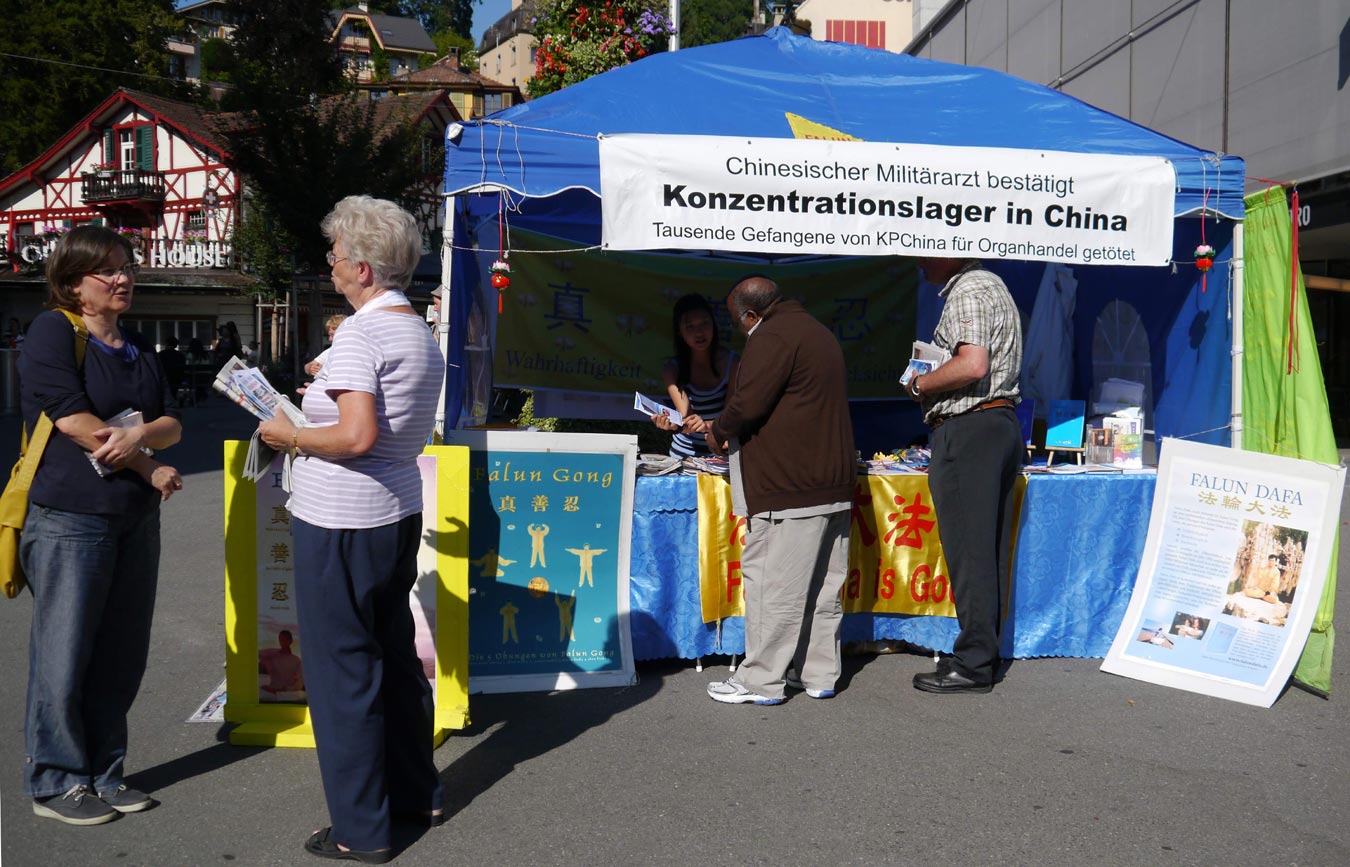 ![]() 法轮功学员在瑞士卢赛恩狮子广场举办真相信息日 |
