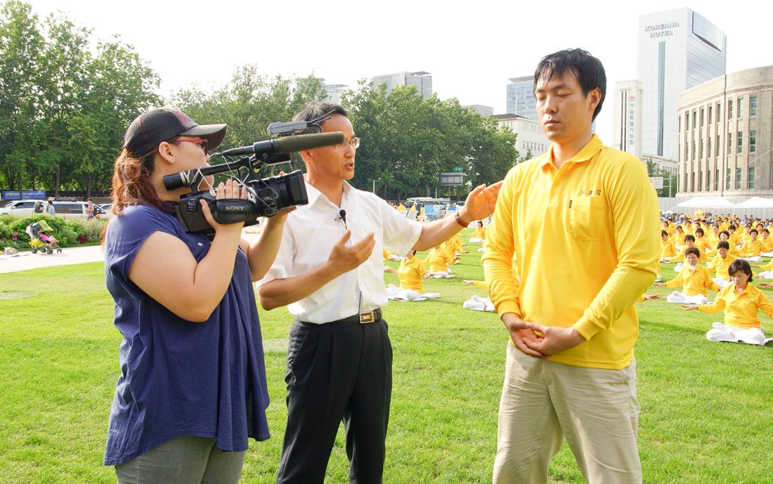 ![]() 当地媒体采访,请法轮功学员详细介绍功法 |