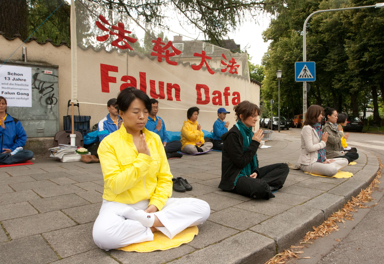![]() 法轮功学员在慕尼黑中领馆前和平抗议中共十三年迫害 |