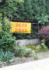 二零一二年七月二十七日晚上,湖北荆门法轮功学员龙庭藩(龙庭凡)和赖金兰在分别路过荆门市区天鹅广场一挂有诽谤法轮功宣传品的橱窗前时被荆门恶警绑架,恶警将六十多岁的赖金兰按到在地上,赖金兰的脸都碰在地上了。
