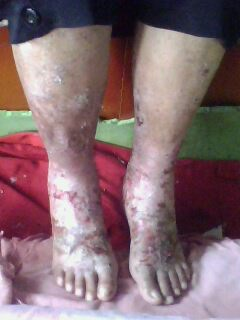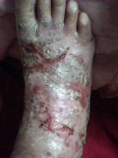 ![]() | ![]() | 在她最艰难的时候没有留下照片,因为当时她的肚子大的非常吓人,好象一碰就要爆炸了,那时,谁也没想到她真的能走过来。她凭着这样的脚每天照样走在救人的路上。 |