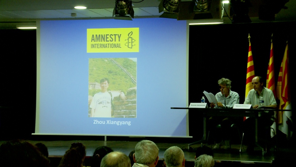 ![]() 大赦国际代表向民众介绍遭中共绑架的法轮功学员周向阳 |