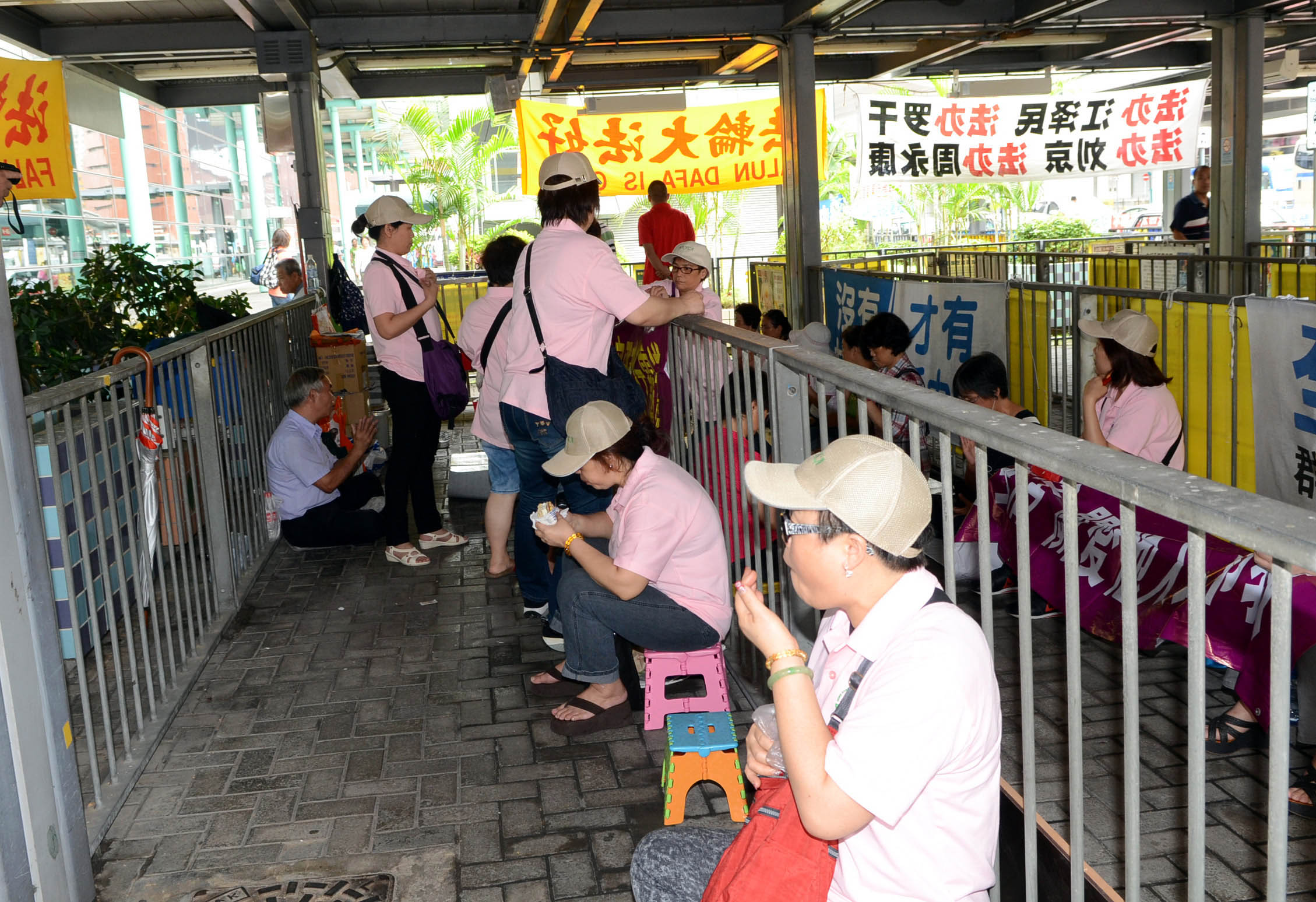 ![]() 十多名身穿粉红色统一制服,上印香港青年关爱协会的帮凶,十九日冲进法轮功学员真相点内,四处悬挂污蔑横幅,又大摇大摆吃东西,用尽各种方法挑衅。 |