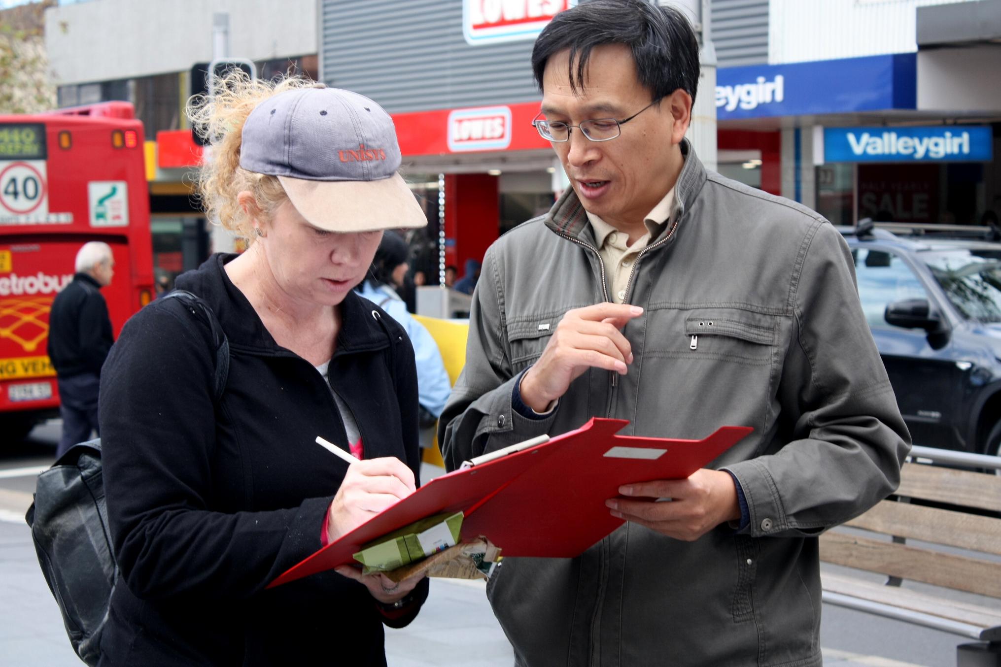 活动地点处于繁华闹市,过往行人中不少是当地的主流社会人士和来自世界各地的旅游者。他们有的签名制止中共对法轮功学员的迫害、有的拿取真相资料,有的询问真相,有的声明退!党!,还有不少人拍照摄影。其中不乏当地华人。