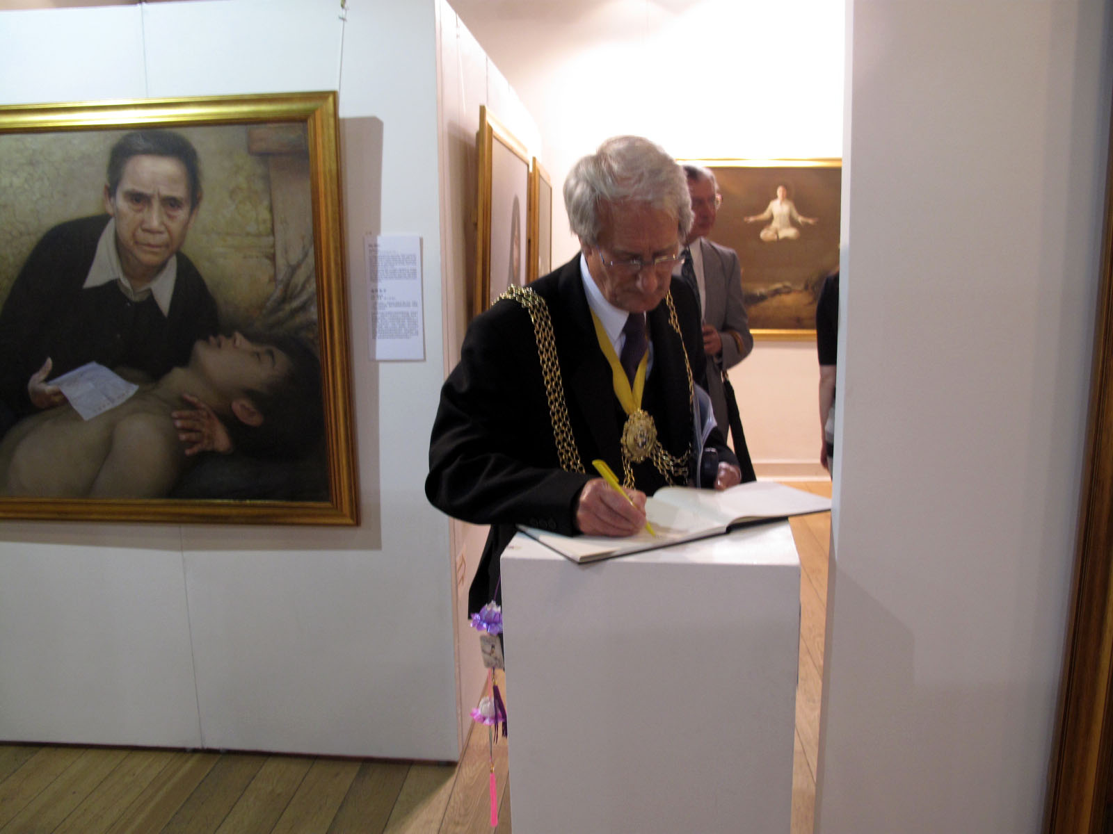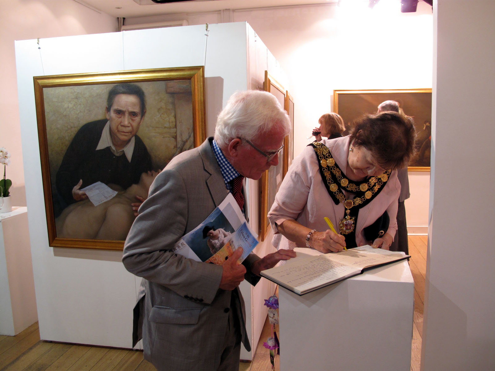 伦敦里士满市长丽塔•帕尔默(Rita Palmer,Mayor of Richmond upon Thames)女士是受邀前来的五位市长之一,本来按计划只能停留半小时的她被感人的画作所吸引,结果停留了约一个小时。临走前她在留言簿上写道:“一个非常有力的信息(A very powerful message)”。