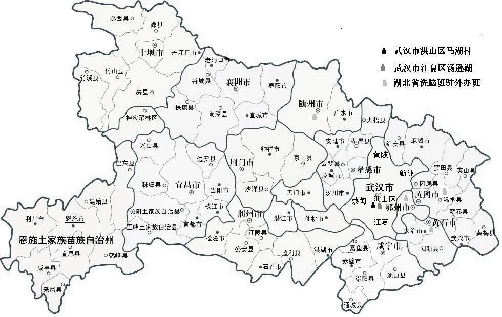 今天位于马湖村特二号的“湖北省法制教育所”,是在二零零九年从武昌洪山区汤逊湖庙山特二号搬迁而来。二零零二年二月,湖北省“六一零”将洪山监狱的一所院子划作洗脑基地,用于“转化”从湖北省各地 绑架而来的法轮功学员。