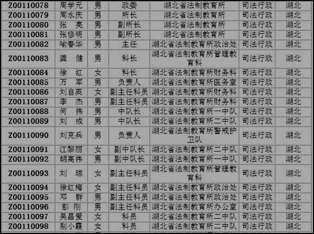 ▲二零一二年“湖北省法制教育所”警察名单和执法证编号