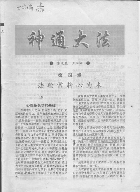 《文艺之窗》1994年第5期对法轮功的专题报导