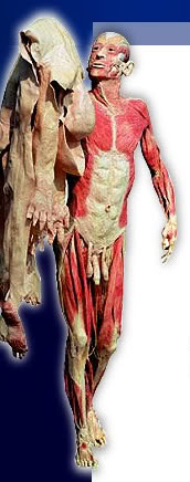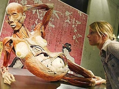 然而这些打着帮助人更好认识自己身体幌子的人体展却广受谴责和置疑。在哈根斯全球巡回人体展的展品中,一个没有人皮的标本摆出潇洒的手拎风衣的姿势,而那风衣竟是他本人的人皮!看过年轻的母亲和她八月婴儿的真人标本的人也莫不惊骇:有谁会自愿捐赠自己遭遇不幸的妻子和未出世孩子的身体供人展览牟利?