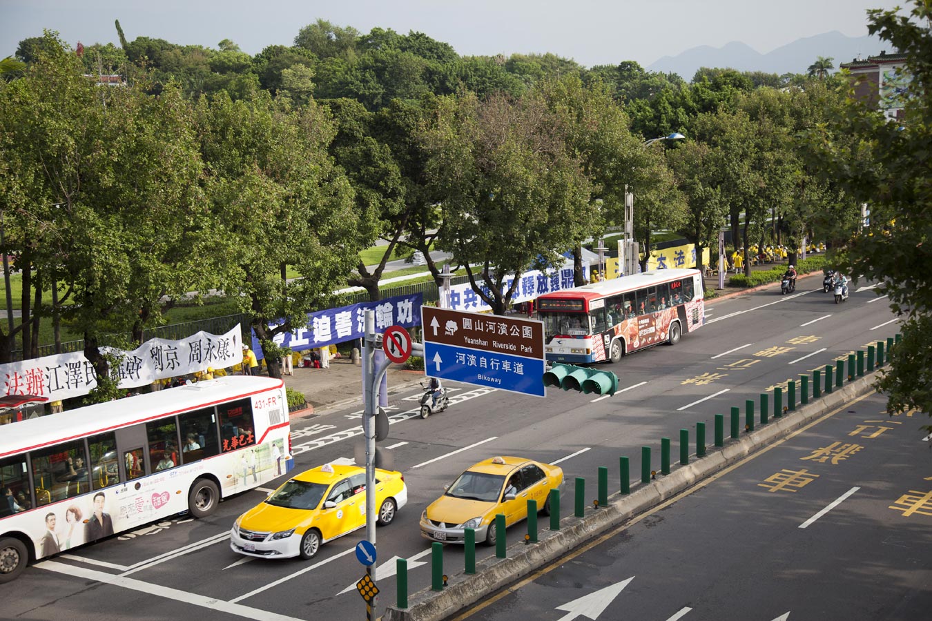 ![]() 千余名法轮功学员在陈云林车队前往台北市的必经道路上抗议中共迫害 |