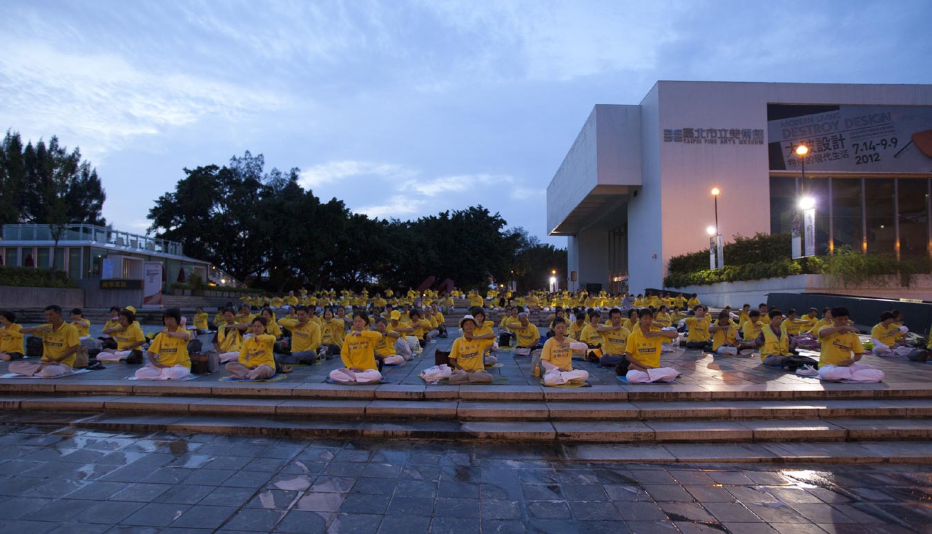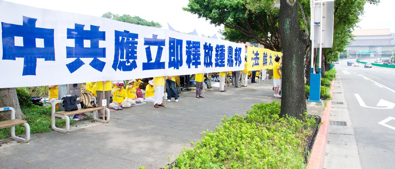 晚间,上千名法轮功学员在中山北路三段美术馆前广场守夜至第二天十号早上,再打起横幅持续抗议至中共释放钟鼎邦。