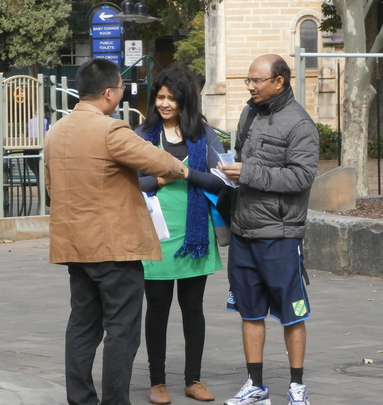 两位澳洲人走过来问:我们怎么做能够帮助你们?中共那么强大,掌握着国家机构,我们的签名声援管用吗?学员告诉他们:非常有用,你们的签名声援很有意义。中共貌似强大,但正义和真理在我们这边,我们要把这些声援信递交到国会,让全世界的人知道中共的邪恶,制止这场迫害。