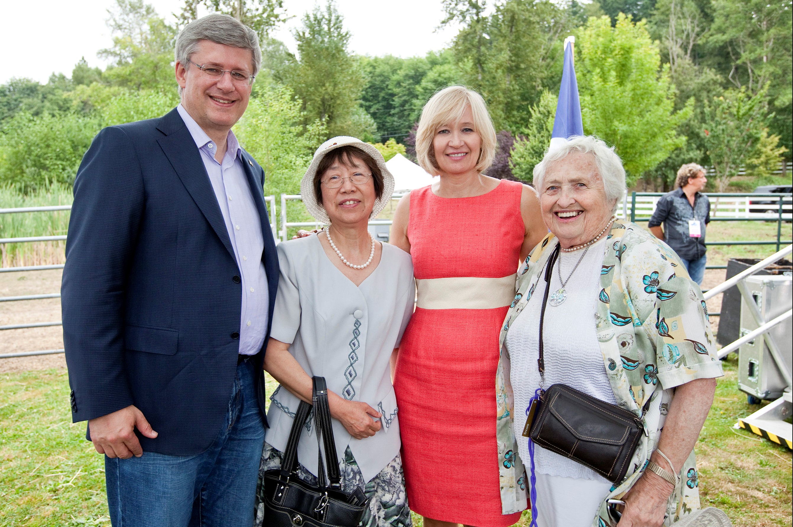 温哥华法轮功学员张素和前国会议员西玛•霍特(Simma Holt)一同参加了夏日聚会。哈珀总理接见民众时,张素当面向哈珀提出法轮功问题,对加拿大政府的支持表示感谢,并希望加政府持续关注法轮功在中国遭受残酷迫害的情况。