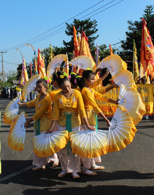 ![]() 法轮功学员组成的仙女队表演扇子舞 |