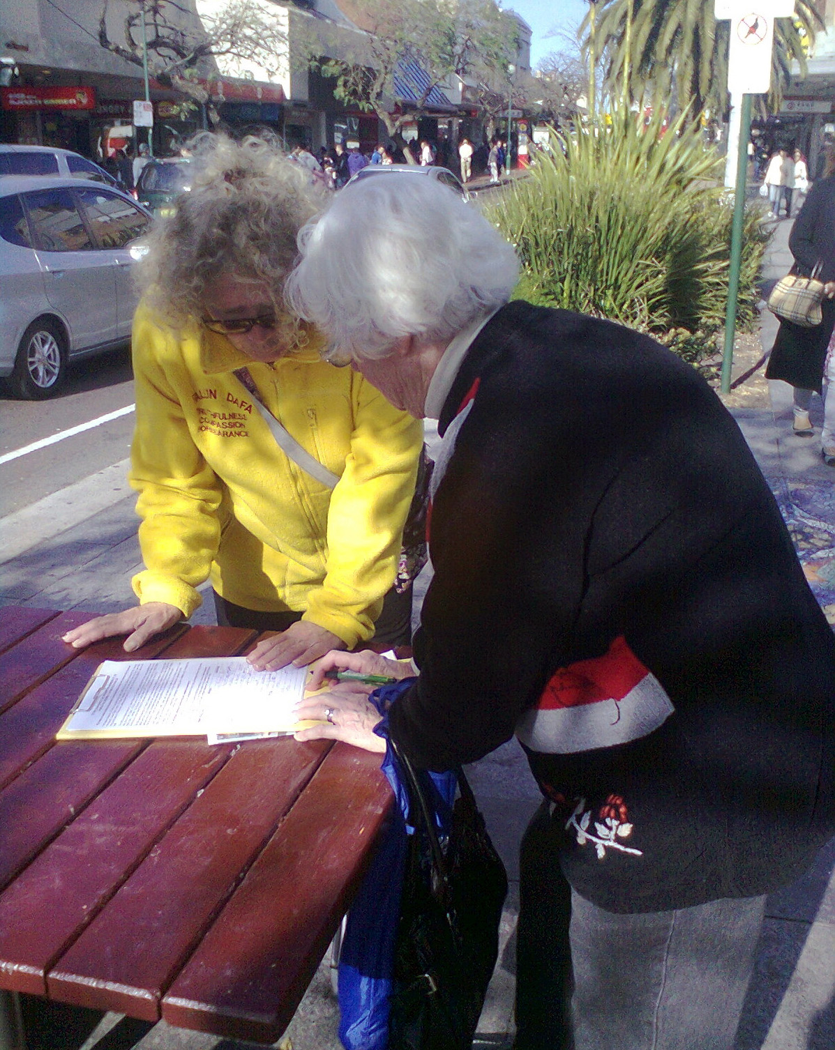 活动下午三点半结束,数十名中国人声明三:退.(退出共产党、团、队组织),上百名悉尼市民签名声援制止中共迫害法轮功。
