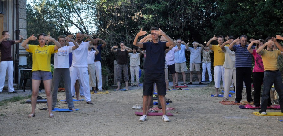 受欧洲强热浪影响,这三天中,意大利温度一度高达三十八摄氏度,但这丝毫不影响法轮功学员一起学法炼功、比学比修的热情。