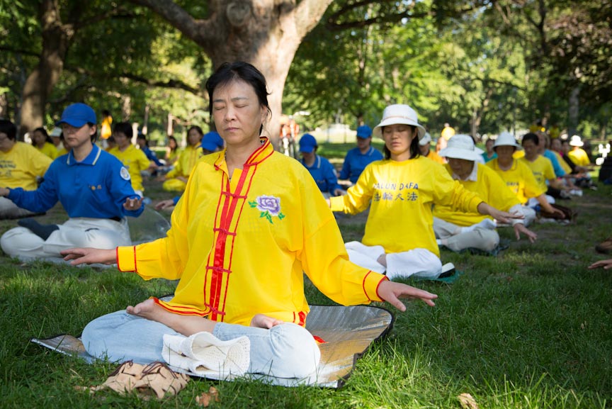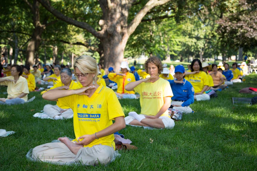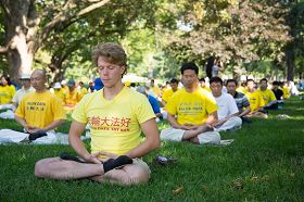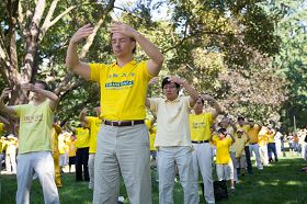 ![]() 二零一二年八月二十六日,法轮功学员在多伦多的皇后街公园集体炼功 |