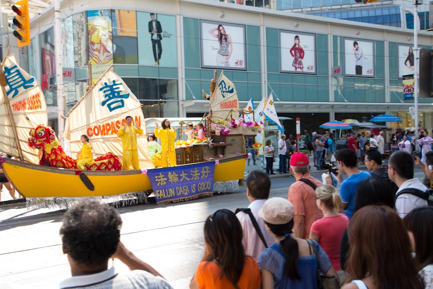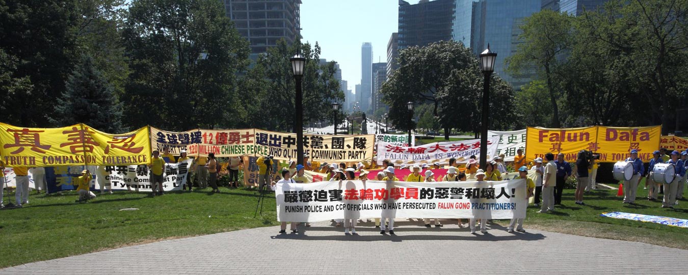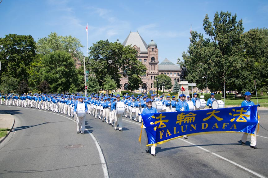 ![]() 二零一二年八月二十六日,法轮功学员和民众在多伦多市中心举行大游行 |
