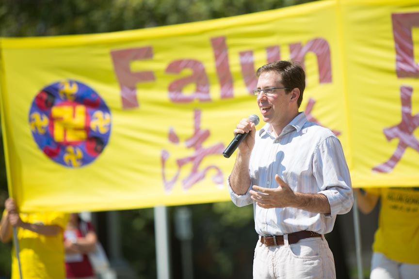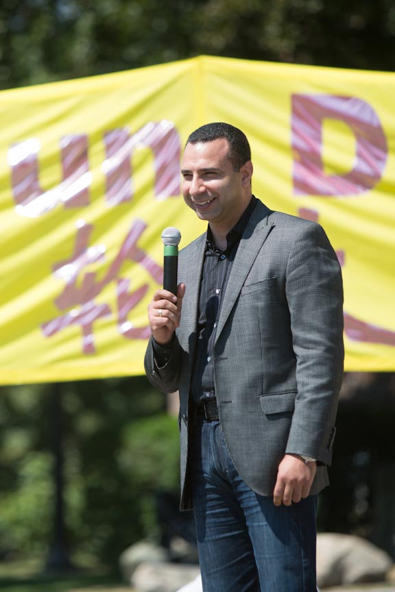 “今天,是自由的加拿大人为真、善、忍而站出来,反抗迫害,反抗践踏人权——正发生在中国的严重人权践踏。”他说,“随着越多人知道迫害,将会有越来越多的人与你们站在一起抗争,直到我们都有自由。”