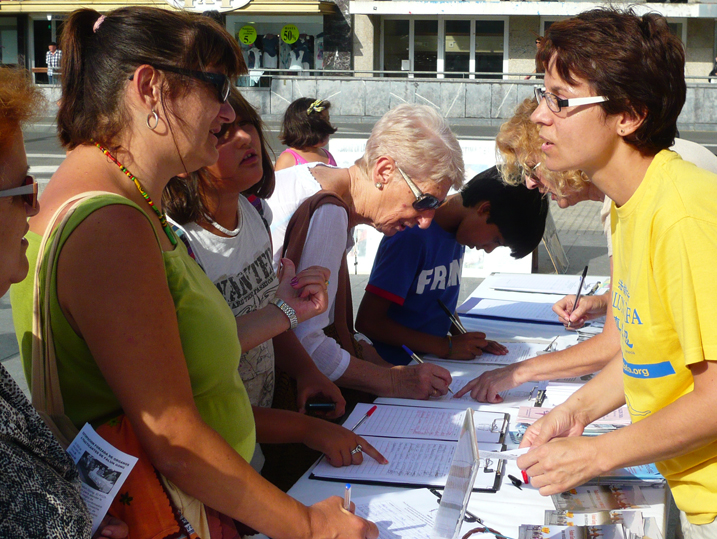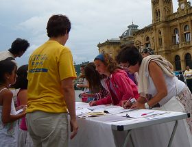 ![]() 圣赛巴司蒂安市民及来自世界各地的游客签字声援法轮功反迫害 |