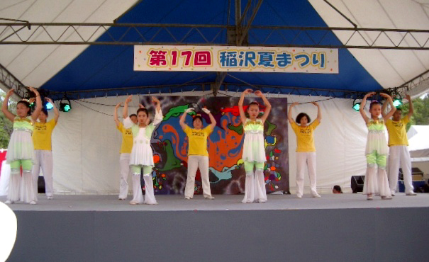 ![]() 法轮功学员在稻泽市第十七届夏季活动节舞台上演示功法 |