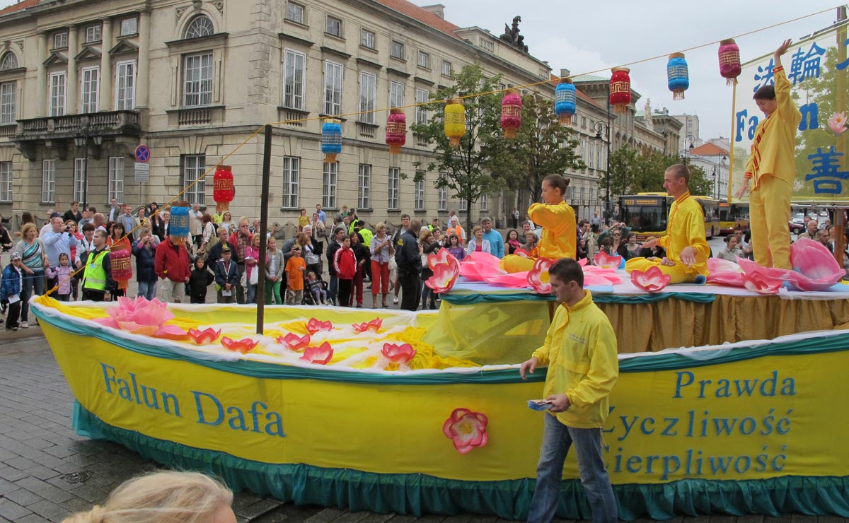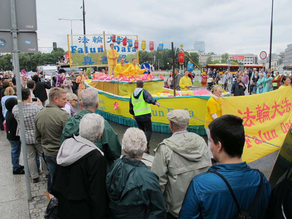 ![]() 精美的花车,祥和的音乐,舒缓的炼功动作,吸引众多波兰人目光,许多人抢拍着美好的画面。 |