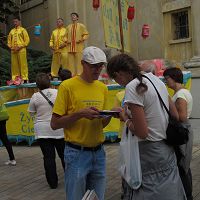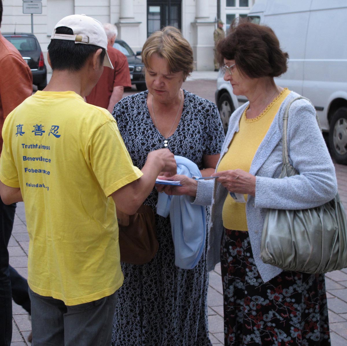 法轮功学员的真相讲解令在场的波兰人感到十分震惊,大家纷纷在反迫害的征签簿上签名,反对中共对法轮功的罪恶迫害。在五个小时中,有四百多波兰人在征签簿上签名。也有很多波兰人购买波语《转法轮》并找到法轮功学员做更深一步的了解。