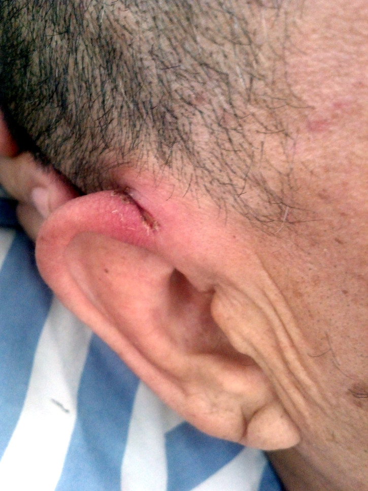 ![]() 李洪奎的右侧耳部有一长3厘米左右纵向豁裂伤口 |