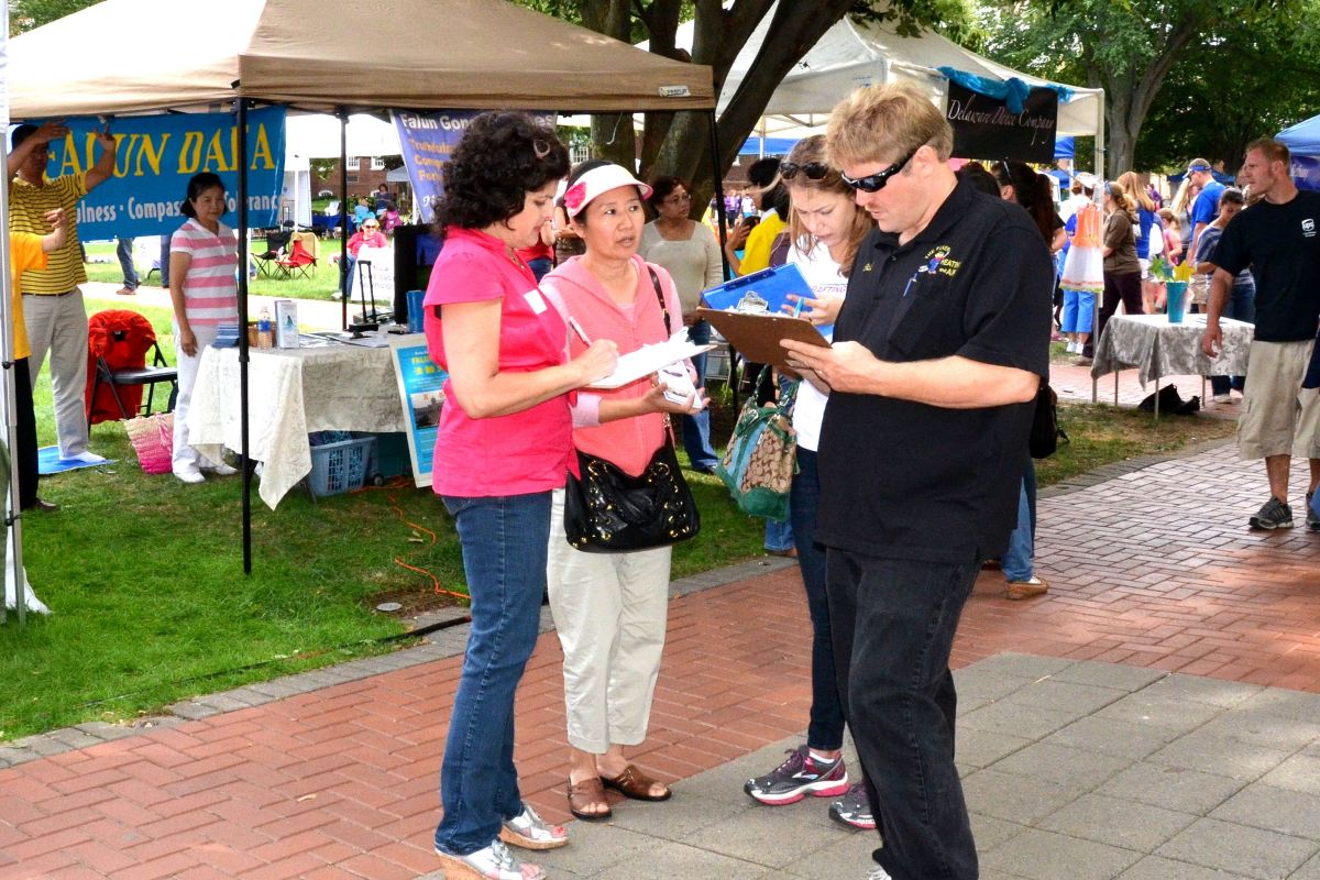 来自附近马里兰州的泰勒先生(Taylor)说,我知道中共很邪恶,对于中共活体摘取法轮功学员器官的邪恶,泰勒先生对法轮功学员说:“我对你们深表悲伤。为什么要那么残忍呢?为什么人们就不能够和平地生活在一起呢?”