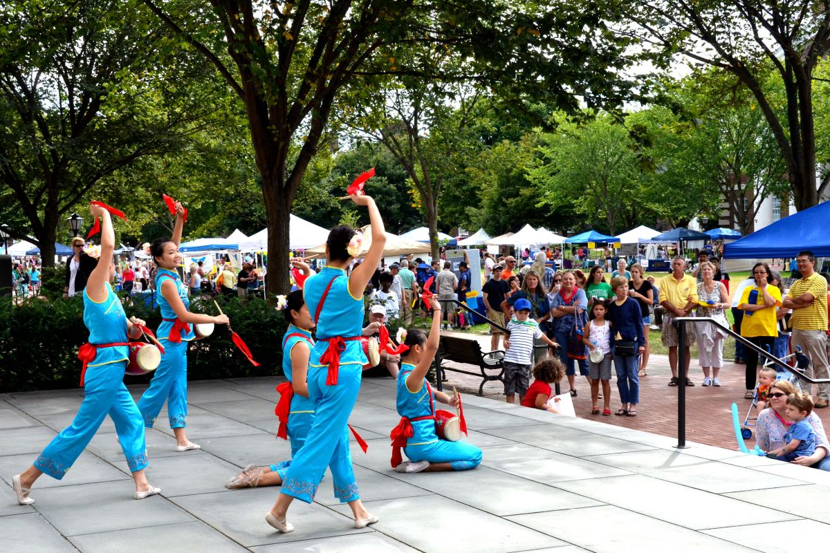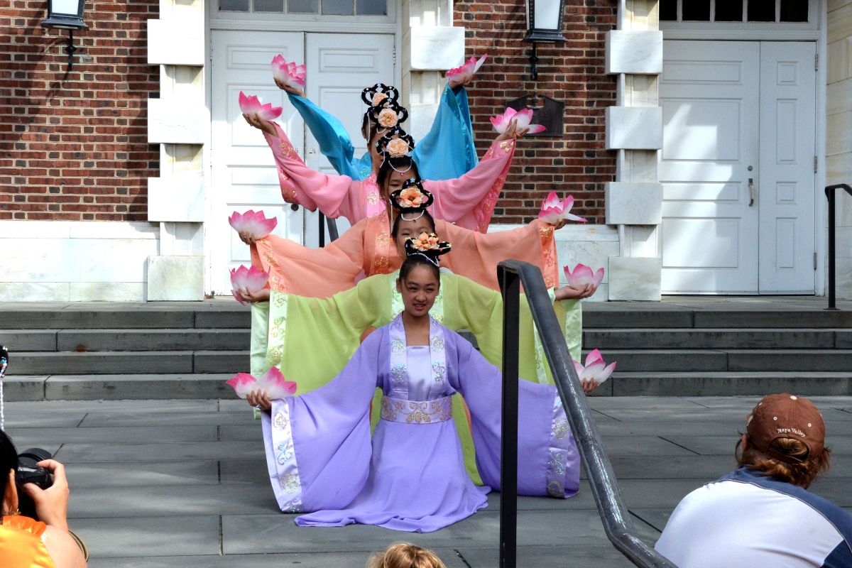 在鳞次栉比的参展商家的帐篷中也有当地法轮功学员的身影。他们的展位上陈列着多种法轮功书籍和真相资料,并以电视录像不间断地播放着法轮功功法演示。大费城明慧中文学校舞蹈队的小弟子们表演的莲花舞、腰鼓舞、扇子舞和现场的法轮功功法演示吸引了众人驻足观看,扩音器中传出的“法轮大法好”的嘹亮歌声在德拉华大学校园上空久久回荡。来法轮功展位咨询的游人络绎不绝,许多人留下了联系方式,表示要学炼法轮功,并有人当场请学员教功。
