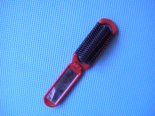 木梳及包装盒。木梳主体由橡胶制成,需要用手将一排排木梳齿插入主体内。木梳主体及木梳齿有毒,长期接触对人体有害。木梳的包装盒由一种透明的特殊材质制成,需要用一种特殊胶水糊制,这种胶水有毒,发出一种刺激的味道。此种木梳出口到许多国家。图示为张士教养院实际生产的一种木梳。