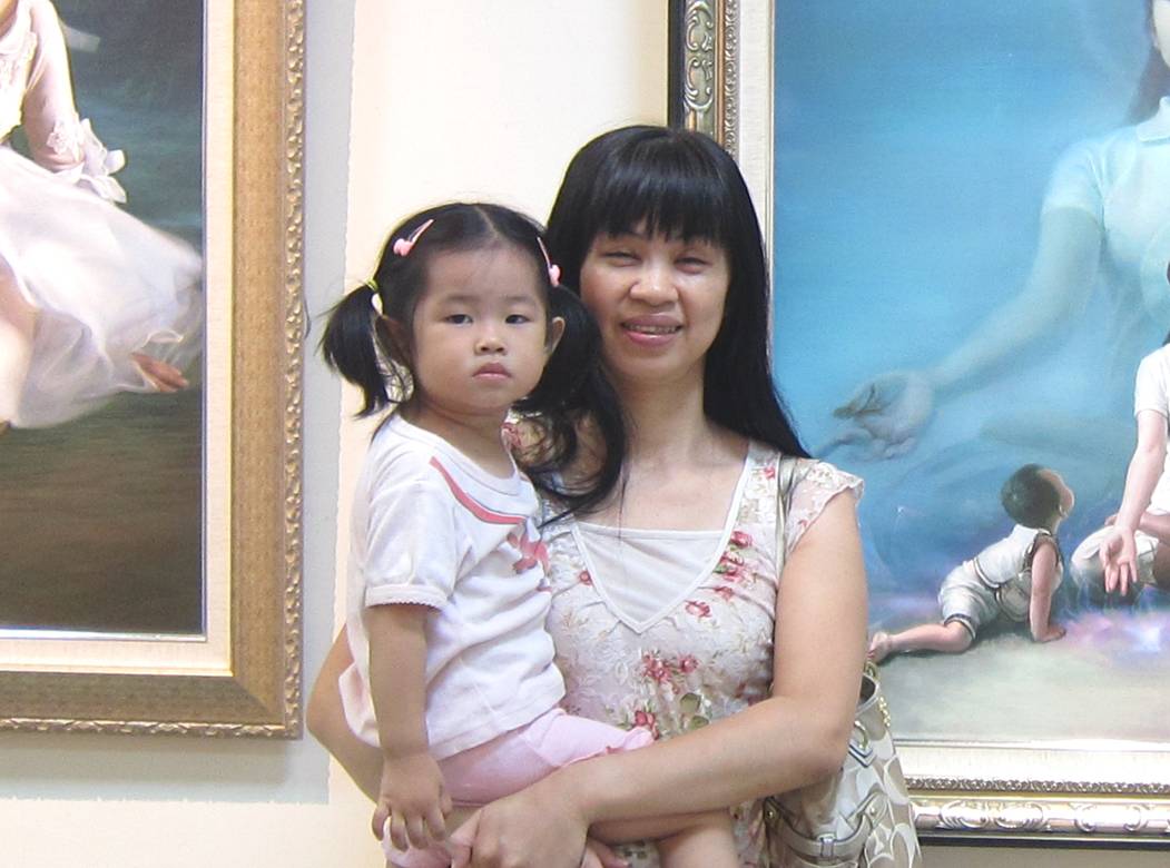 画展中描绘神佛世界及充满警世的作品,也让许多民众触动;从台北回屏东娘家探亲的杨文琼和丈夫一起带着两岁的女儿来看画展;杨文琼说,画中的人物栩栩如生,很美、很纯净,让她仿佛置身仙境;有些描写神佛故事及警世的作品,也让她深思,人真的是从天上来的,每个人的生命都是珍贵的,应该要珍惜、要做好事。