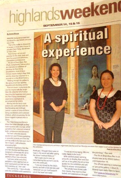 当地媒体《高地周末》(Highland Weekender)的记者采访了法轮功学员,该记者告诉学员,这个画展是一个非常感人的画展。报道刊登后,大量的游客慕名而来。