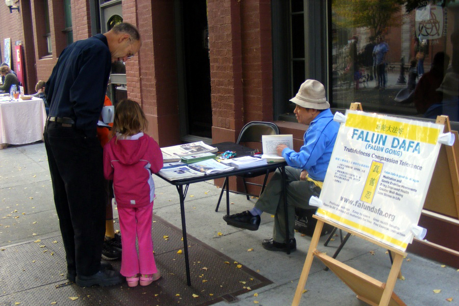 我们几名学员早上六点,天蒙蒙亮就出发,六点半左右来到指定的展位,布置展位。到了八点,集市的人开始多起来,人们络绎不绝来到展位前和我们交谈,我们告诉他们什么是法轮大法,修炼之后对身心获得的益处,及中共邪*党-对善良的法轮功学员的残酷迫害等。对于残酷的迫害,人们都觉得不可思议,纷纷要求记下我们的联系方式,表示以后要学功。