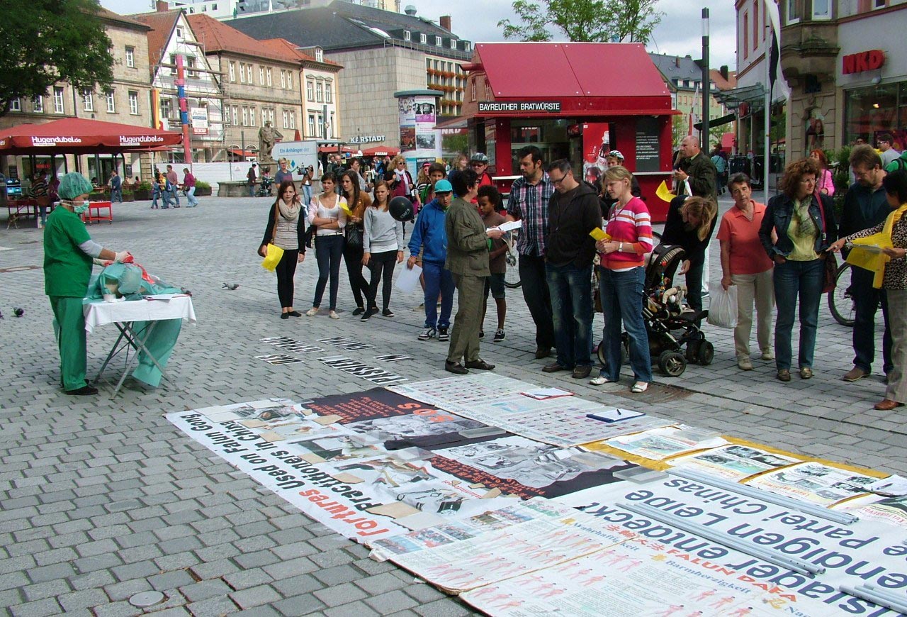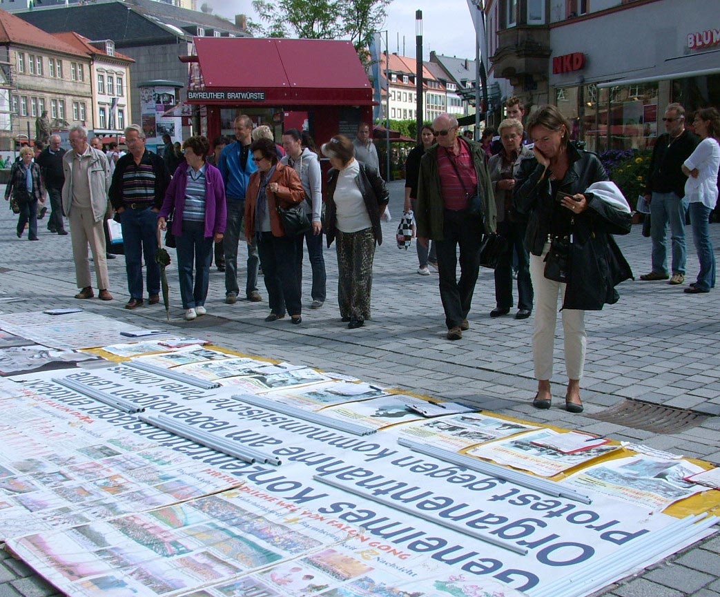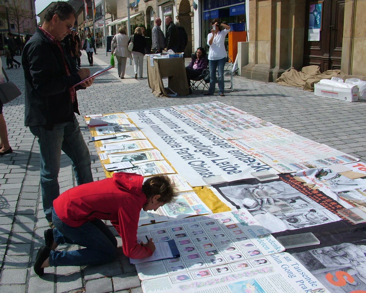 ![]() 德国拜罗伊特市中心,人们签名谴责中共迫害法轮功 |