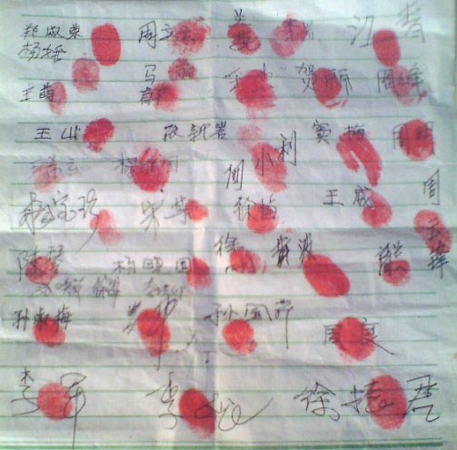![]() 亲朋签名、按手印要求释放盖永杰 |