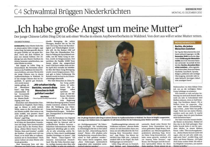 ![]() 《莱茵河邮报》刊登了对丁乐斌的采访报道 |