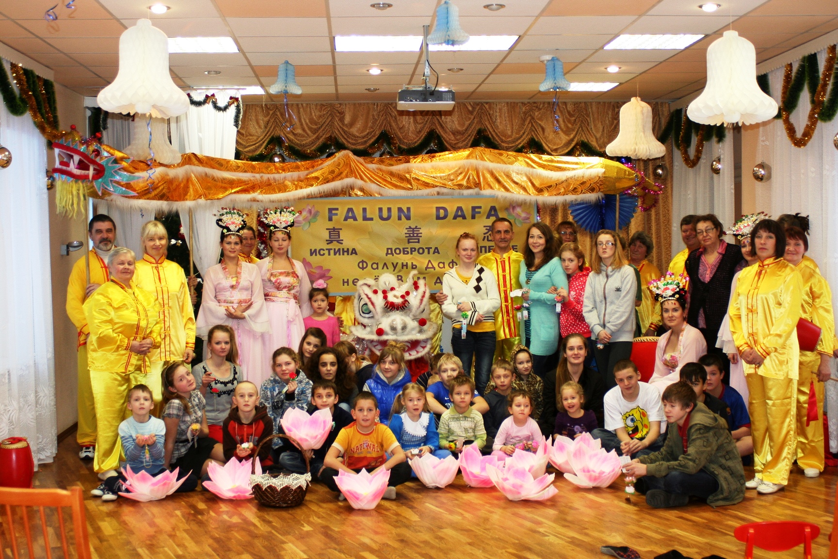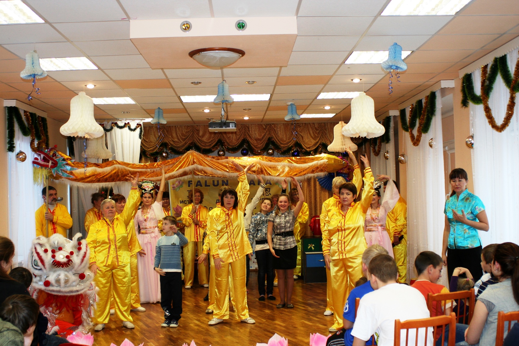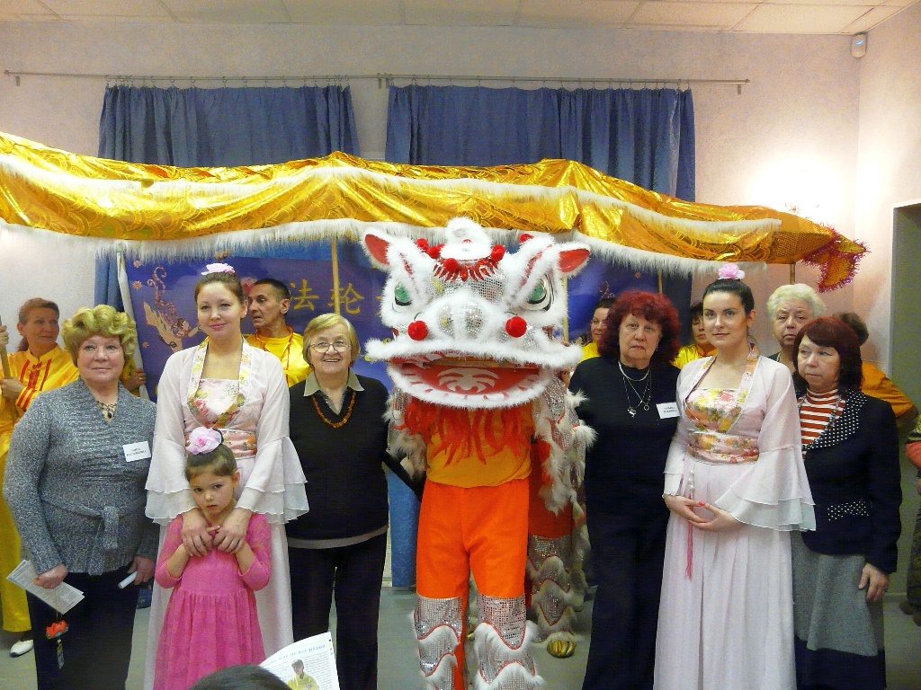 在圣彼得堡市一个老年人活动中心里,学员们向大家介绍了法轮功功法的特点。法轮功,也称法轮大法,是一九九二年五月由李洪志先生传出的佛家上乘修炼大法,以宇宙最高特性“真善忍”为根本指导,有五套简单易学的功法,适合于各年龄的人们修炼。经亿万人的修炼实践证明,法轮大法是大法大道,在把真正修炼的人带到高层次的同时,对稳定社会、提高人们的身体素质和道德水准,都起到了不可估量的正面作用。学员们也介绍了十几年来,中共在中国残酷迫害法轮功学员的事实真相。看到优美舒缓的功法演示后,老年人活动中心里的许多人当场就学习起来。法轮功学员们还表演了腰鼓、舞龙、舞狮。老人们都说,和法轮功学员在一起感受到善良、祥和的气氛。