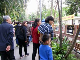 通往官邸露天音乐台及花园的步道边缘左侧,每隔六、七步远就有一面“法轮大法好”旗帜飘扬,右侧则是“法轮功正法之路摄影展”。川流不息的大陆观光客一走一过,许多人看见旗帜念着“法轮大法好”,更有许多人放慢脚步盯着“法轮功弘传全世界一百多个国家与地区盛况”的真相图片观看,不少人停下脚步,驻足图片前仔细观看,想要更深刻的了解更多真相。