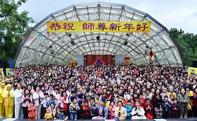 午后,近千名法轮功学员齐聚官邸露天音乐台,齐声恭祝“师尊新年好”,以表达对法轮功创始人李洪志先生的崇敬与感恩之意。现场还表演音乐、舞蹈与敬颂《洪吟》,以及全体大合唱“师父啊,谢谢您!”、“师父,新年好”、“法轮大法好”以及“为你而来”等歌曲,作为最诚敬的献礼。