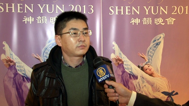 “神韵展现了我们民族的汉唐文化,又联系着现在的社会事务,节目里反映出法轮功修炼者受到了不公正的待遇,相比之下,反差很大。我觉得,中国传统文化应该继续被发扬,不公正应该被抑制。”