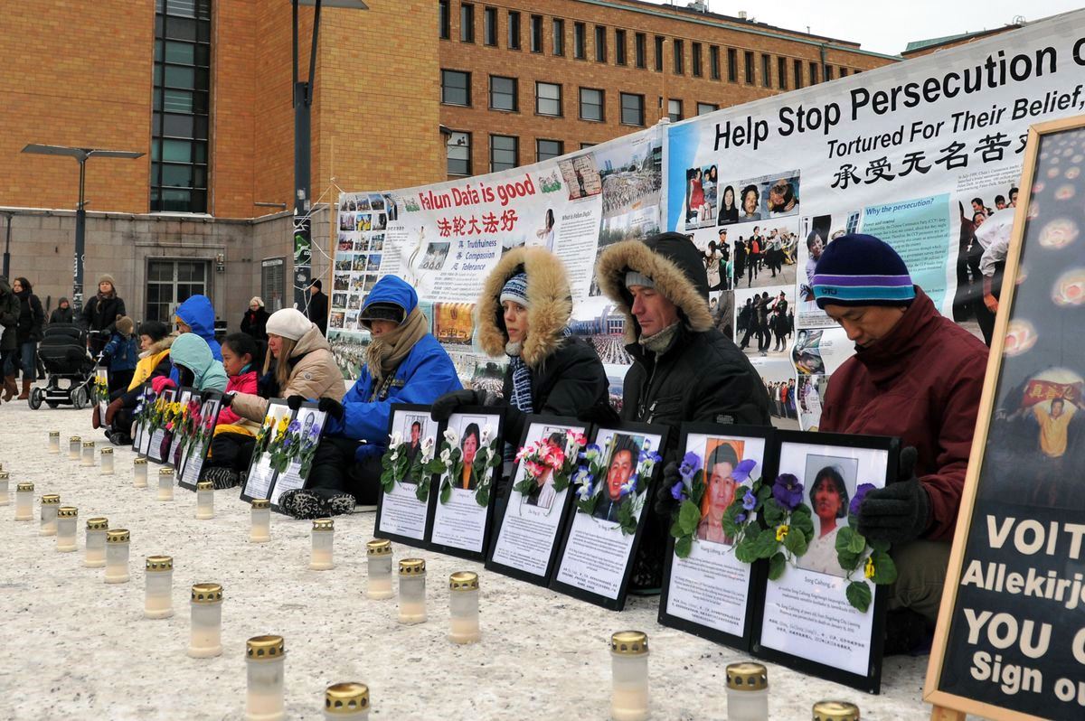 ![]() 芬兰赫尔辛基法轮功学员在火车站旁的广场上举行烛光守夜和平反迫害活动 |