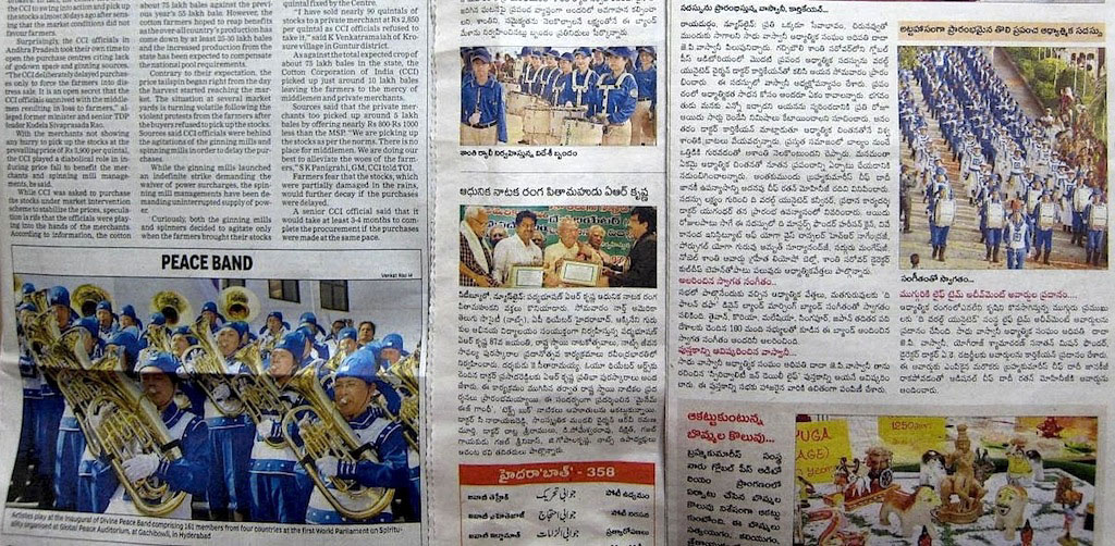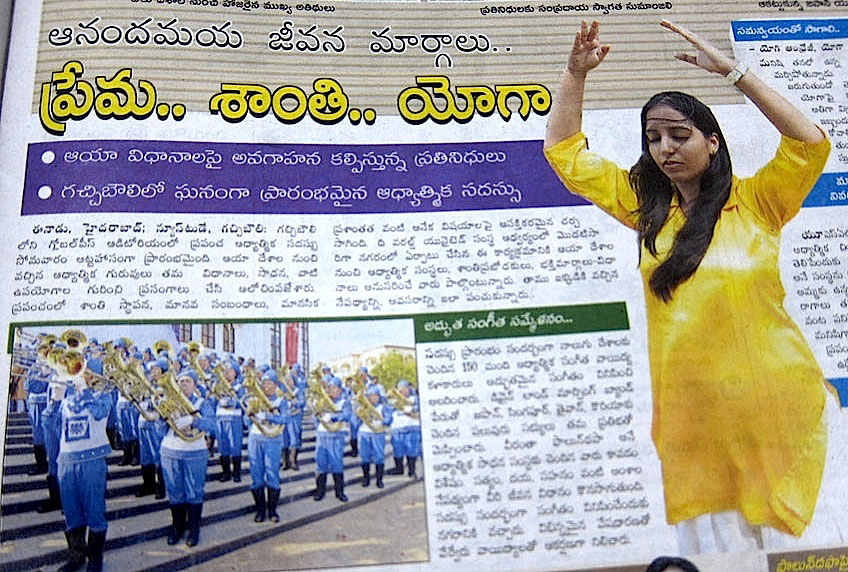 海得拉巴市有数种不同语言的报纸,都连续数日以大篇幅报导天国乐团的新闻。当地电视台也每天跟拍,并采访了印度学员与台湾学员,让电视机前的一亿多名观众知道,为何有这么多人修炼法轮功,并到印度来告诉大家法轮功的美好,以及天国乐团是因为修炼大法才能吹奏出充满“真、善、忍”的动人乐音。